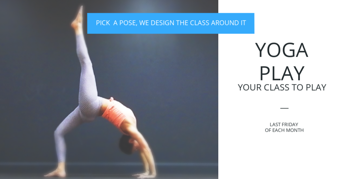 We all love our favourite poses and we always hope it’s those we love are in our class. Well…This is the class! We will having a monthly Play class. This class is going to be designed by YOU. This hour and a half class is going to be tailored to the requests received when you book in. As we receive your requests we will build the sequence around your faves. There will be options for everyone (in case you don’t like the pose someone else has chosen).